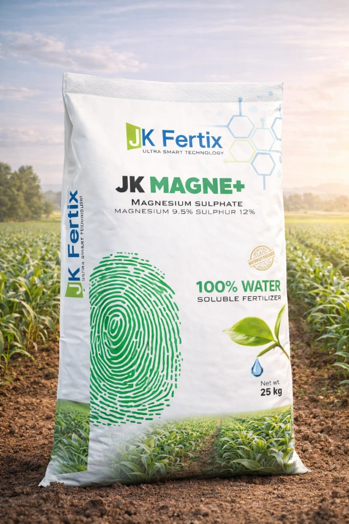 JK MAGNE + is a high-quality water soluble Magnesium Sulphate fertiliser that supplies essential Magnesium and Sulphur to crops. It plays a vital role in chlorophyll formation, photosynthesis and overall plant metabolism.